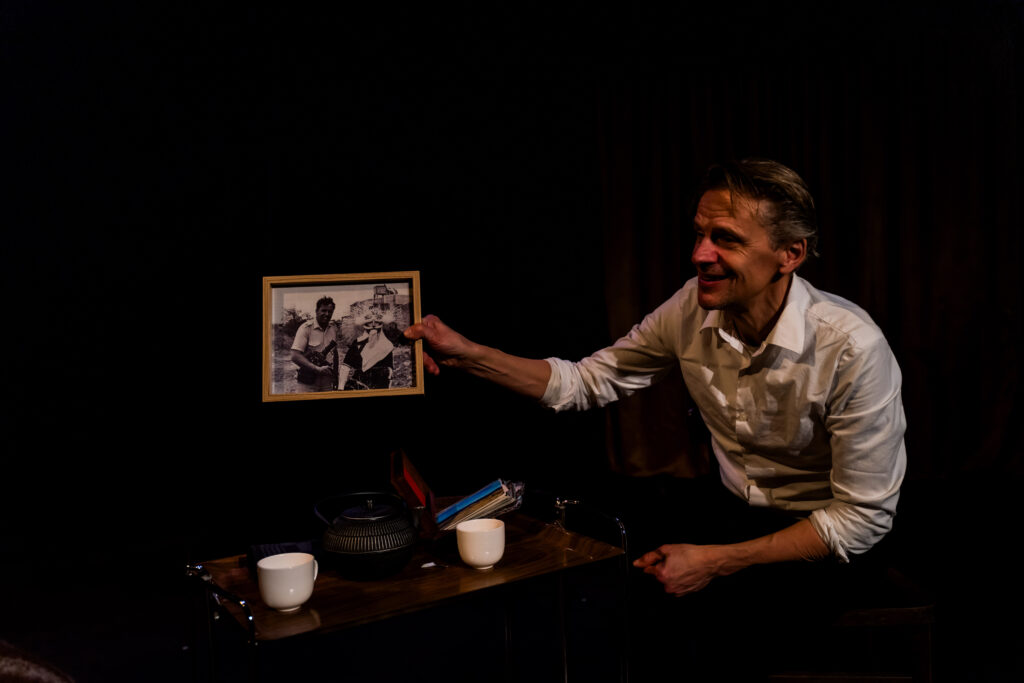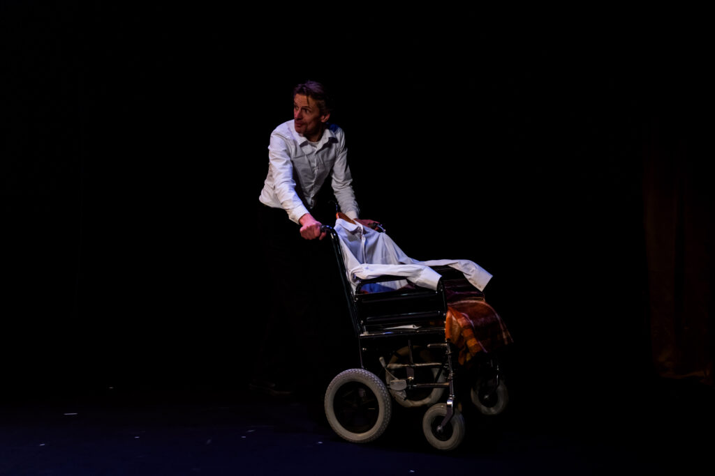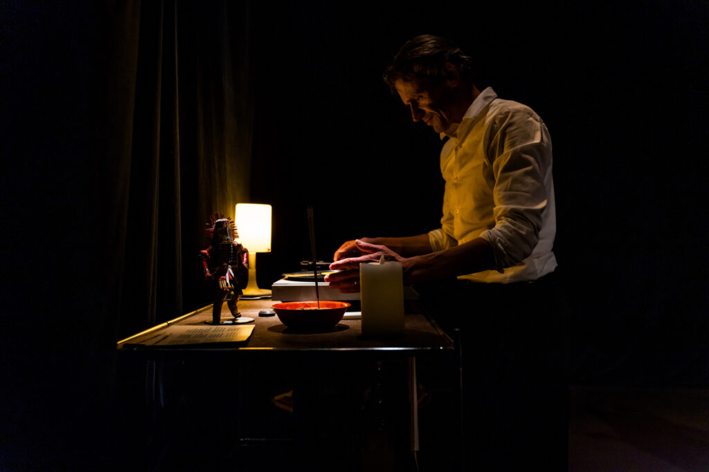 Dans ce seul en scène, le narrateur convie le public dans l’espace sacré du théâtre où, inspiré par ses diverses explorations ritualistiques, il partage avec les spectateur.ices un rite singulier et festif auquel son père, grand voyageur, aurait certainement aimé participer.