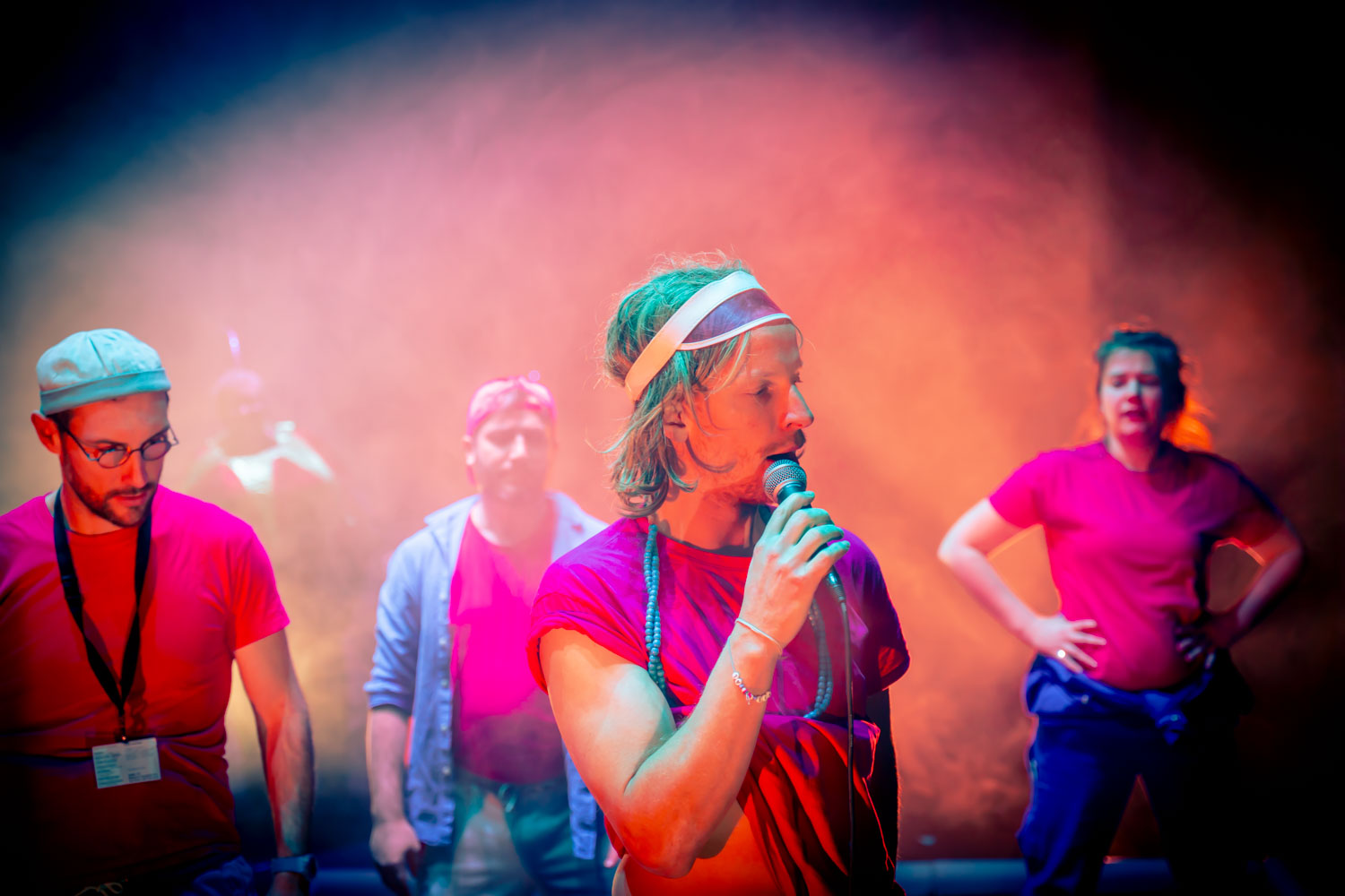 Un spectacle plutôt drôle, thérapeutique et extrêmement sérieux, 87,2% de spectateur·ices satisfait·es. Issu d’une écriture collective sur base d’improvisations, Les Vrais Majors, passés maîtres dans la (dé)construction du questionnement, magnifie avec ÉLÉPHANT les formes protocolaires de l’absurde.