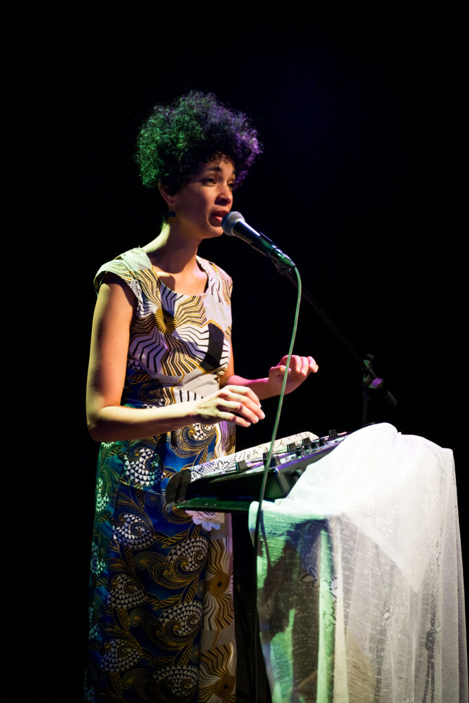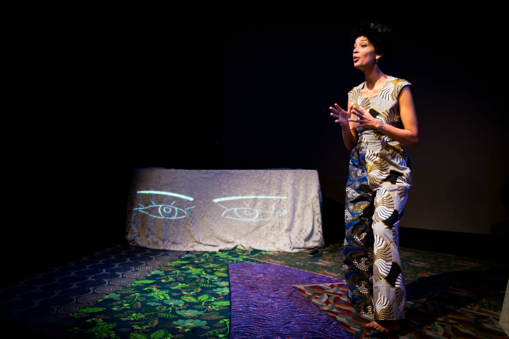 Création et interprétation Amandine Nkeshimana | Vidéo et création lumière Simon Pacoret | Dramaturgie Diana David | Mouvement Corentin Delpierre