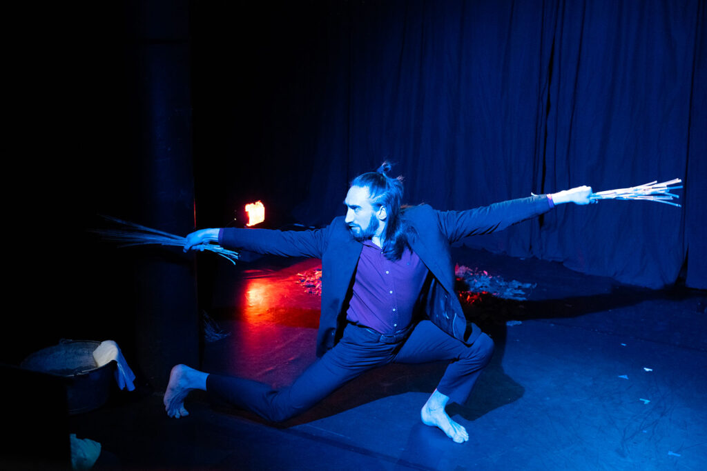 Création de théâtre physique à la frontière des univers de Faustino Blanchut, comédien, et de Pierre Blanchut, musicien de musique persane, La mauvaise Herbe s’inspire du livre Alamut de Vladimir Bartol : Perse, Haschisch et secte des assassins, ferveur religieuse !