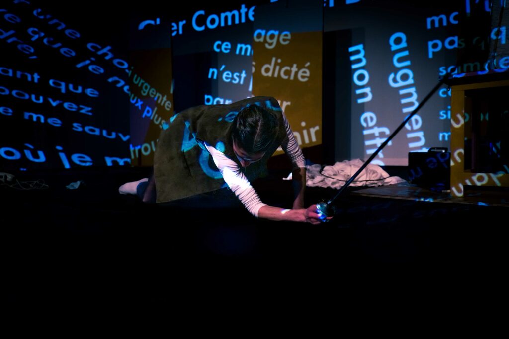 La comédienne, seule en scène, donne vie à ces trois femmes et à la figure de la littérature dont elles s’emparent, Mariana Alcoforado, l’héroïne des Lettres de la religieuse portugaise. À elles trois, elles incarnent une quête de libération des corps , une recherche de sens, une lutte à travers la poésie.