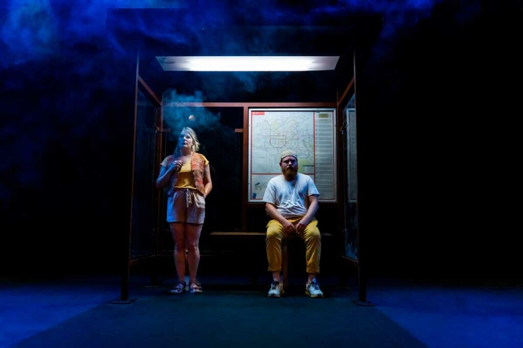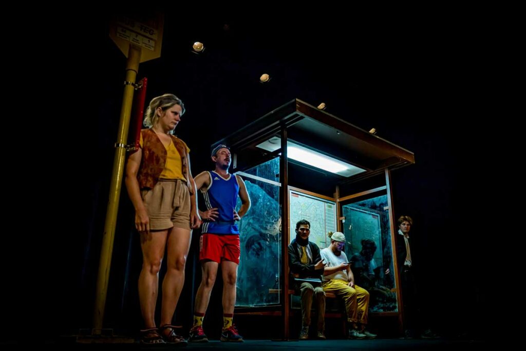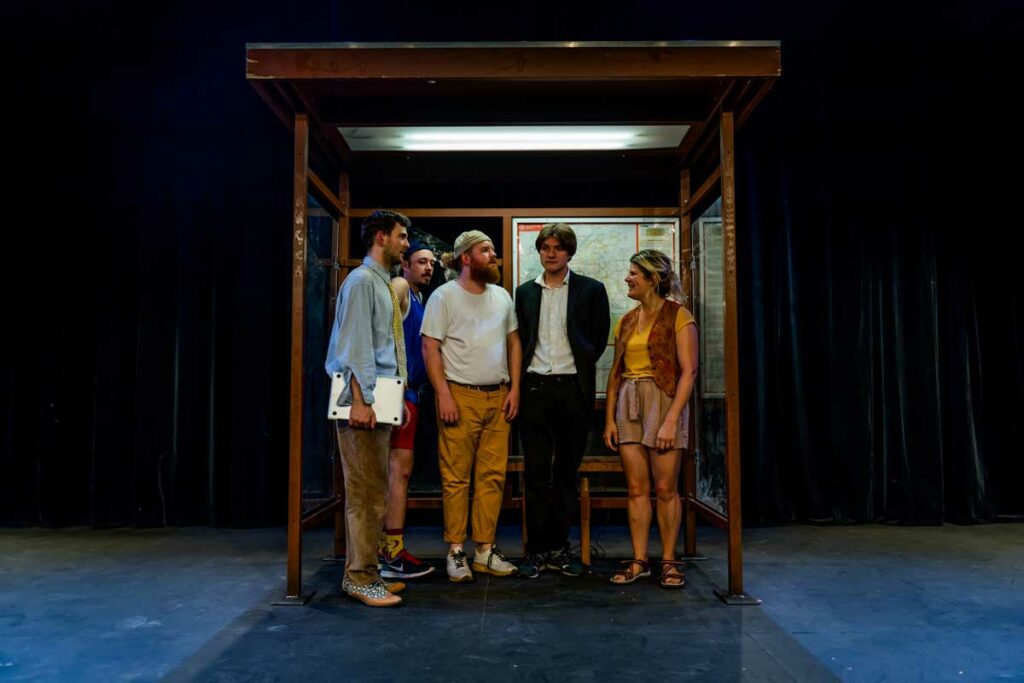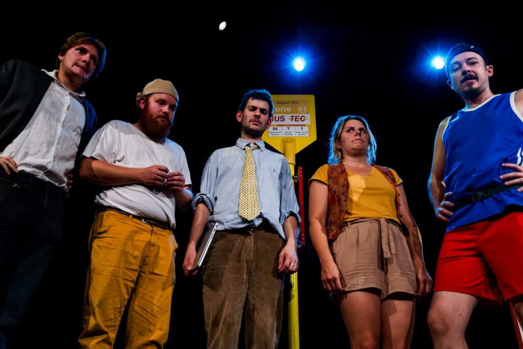 Il s’agit ici d’un regard sur ce qui nous bloque de plus en plus, de jours en jours. Ce qu’on fait et surtout ce qu’on ne fait plus. Dans un lieu de passage, 5 personnes qui ne se connaissent pas, qui ne veulent pas nécessairement se rencontrer, vont être amenées à partager un peu de leur vie ensemble.